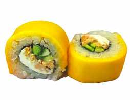 копчёный угорь,творожный сыр,огурец,такуан,стружка тунца,спайс соус,терияки соус